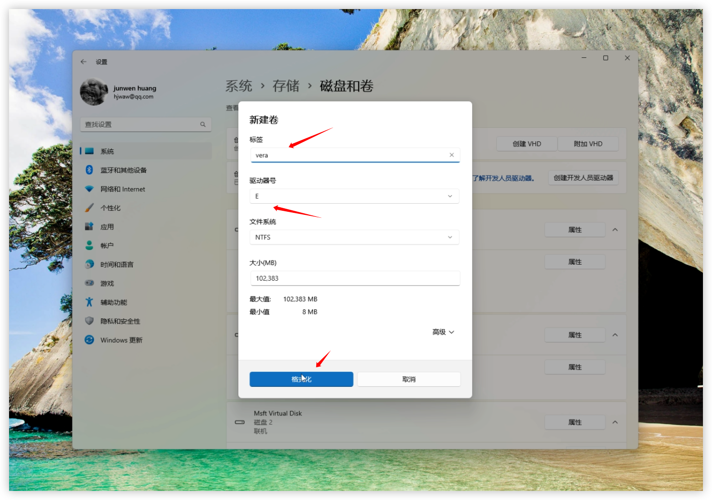 9、标签是在我的电脑里显示磁盘的名字,驱动器号看喜好不重复就行,点击格式化