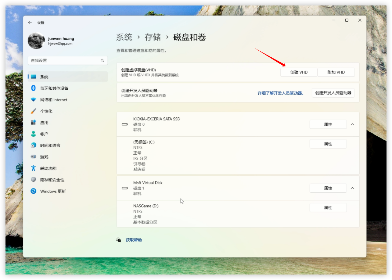 1、VHDX挂载每次关机会分离,需要再次手动附加VHD
