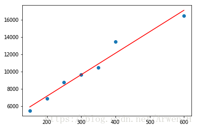 #创建线性回归模型,拟合面积与价格并通过面积预测价格