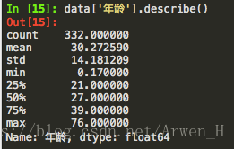print(data['年龄'].describe())#看一下年龄统计数据情况