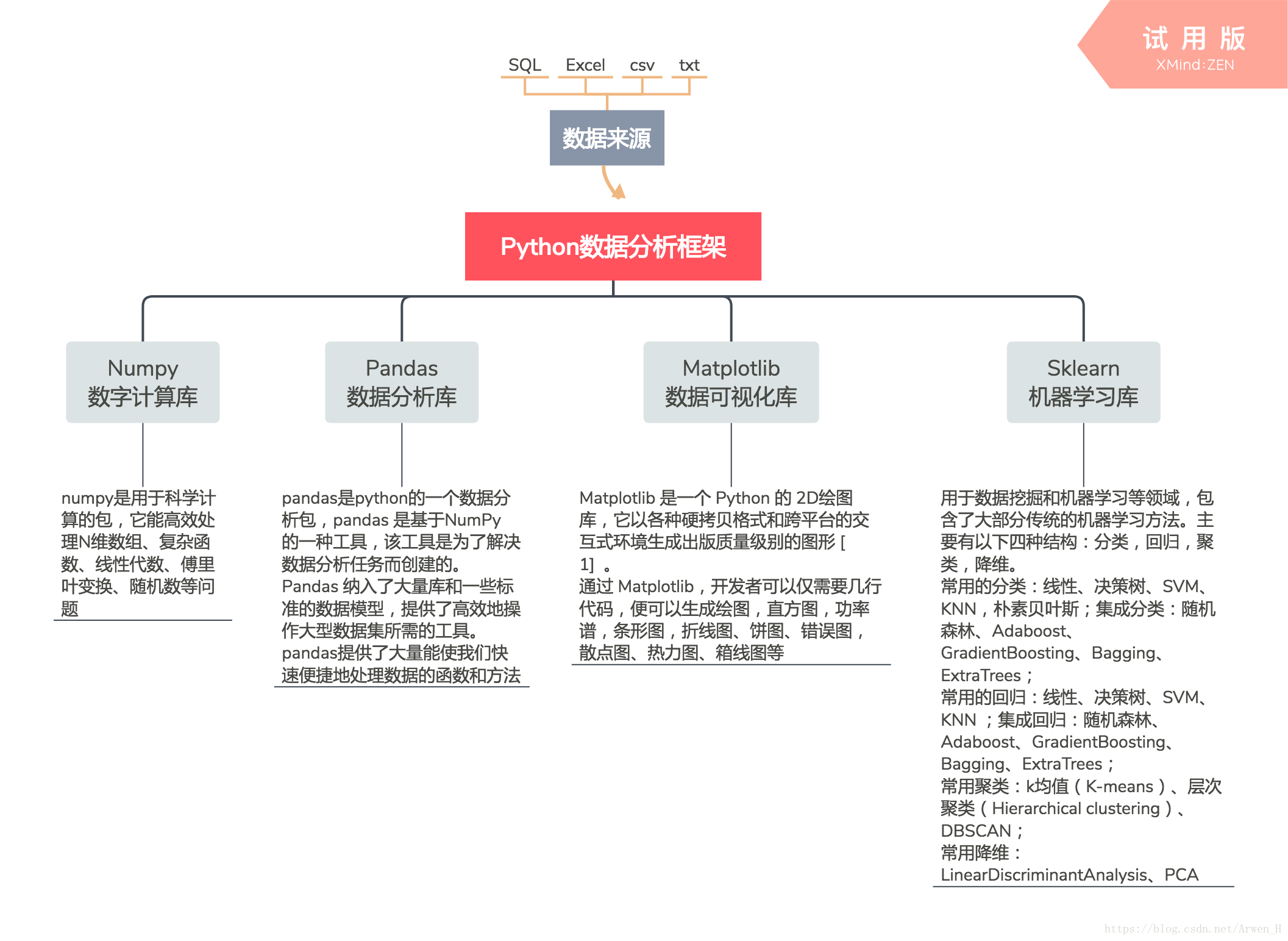那我们用了这么多Python工具,这些工具都是干什么用的呢?画了以下导图方便萌新进行初步了解,后续再分别去讲每个python库的用法参数等